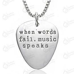 Guitar pick necklace silver/18k gold/black gun plated guitar with music note pendant jewelry for music lover men and women kp0157.