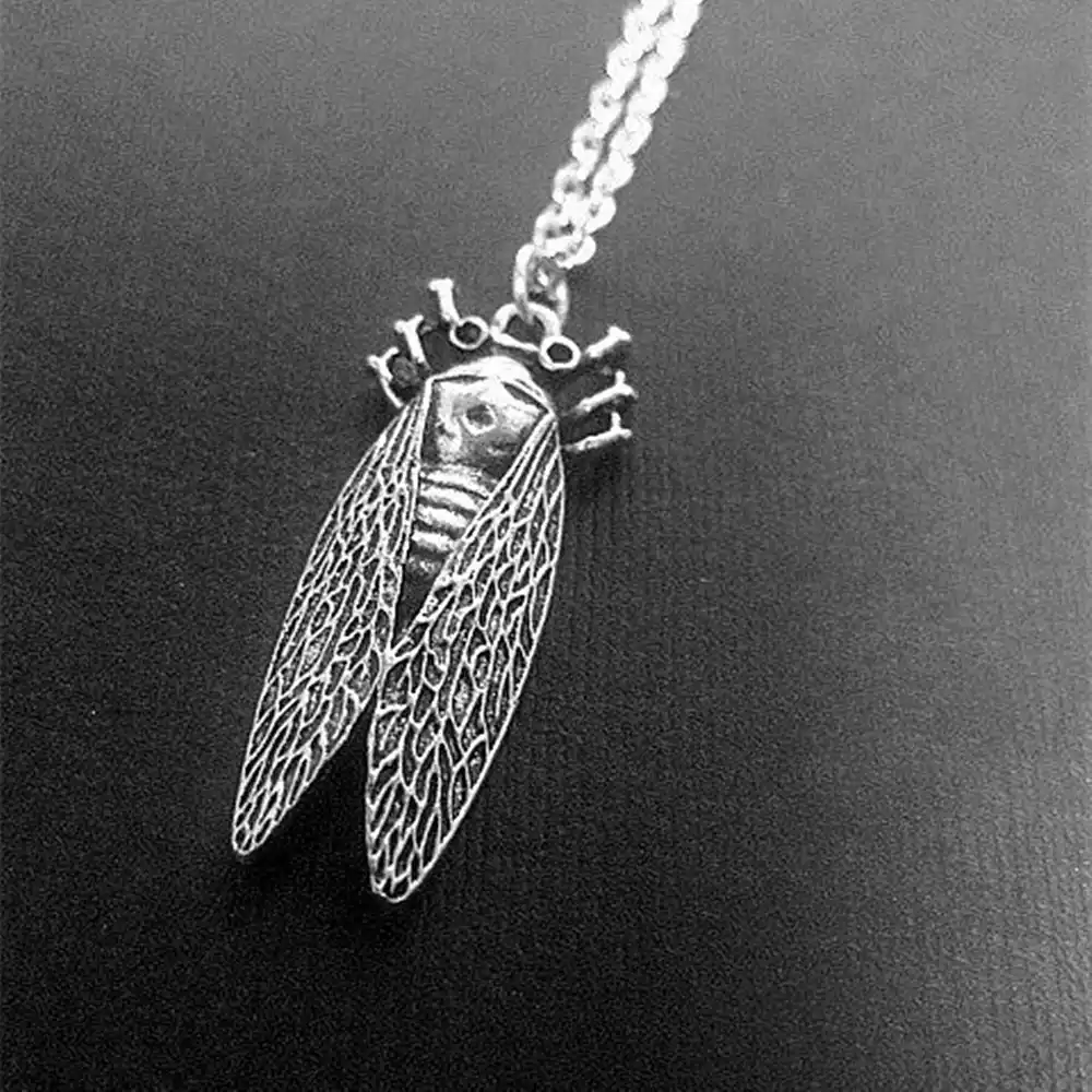 Cicada wing necklace insect wing jewelry minimalist indie aesthetic neutral color resin art pendant for the entomologist symbol of renewal beachnbling 5 out of 5 stars (78) $ 18.99. This necklace was worn by millicent rogers (who also owned the suit previously mentioned), one of schiaparelli's best clients who was brave enough to wear her outré designs. The multicolored metal insects were also seen securing a ribbon hatband on a doll hat and resting on the collar of a suit (see 2009.300.2374a, b).