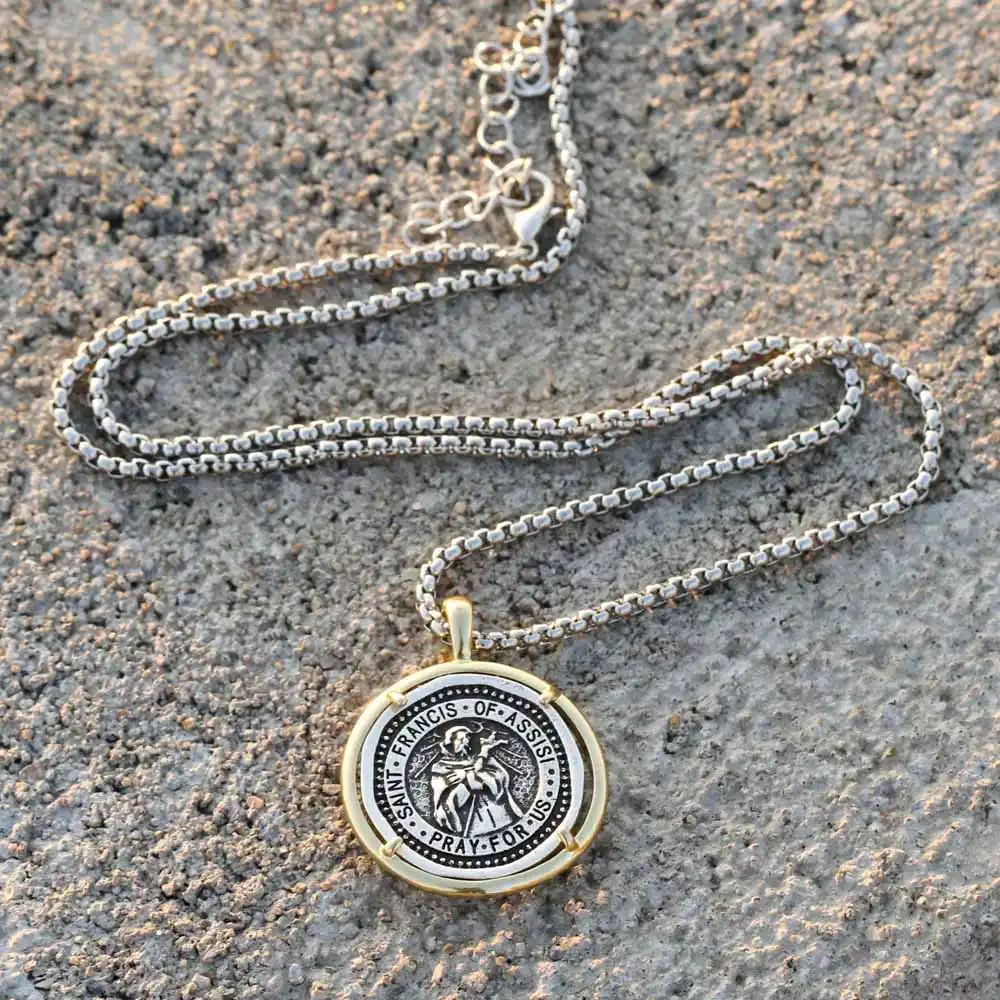 Saint Francis Of Assisi Necklace Catholic Patron Saint Of Animals from www.silverenchantments.com This pendant is available with or without a chain. Saint francis of assisi necklace, double sided medallion, artisan greek coin necklace, 925 sterling silver medallion, layering necklace designbydd. Get it as soon as thu, jul 1. This love was a boundless love that flowed from his fiery heart. Saint francis of assisi is the patron of peace, ecology, animals, italy, merchants, the franciscan order, and families.