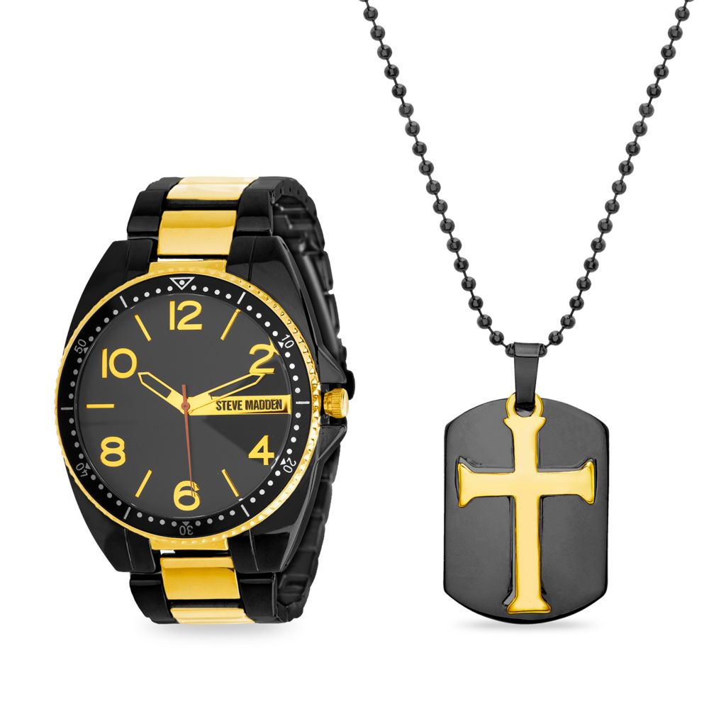 For your convenience, we accept returns for online orders at steve madden stores (only stores in the usa excluding colorado, utah and savannah, ga locations). Steve madden mens watch and dog tag necklace set. Returns will only be accepted if the item is in brand new condition with the original packaging that it was sent to you.
